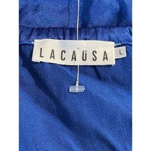 La Causa Neptune Cry Baby Tank Top Satin Royal Blue Ruffle Women's Large NWT
