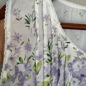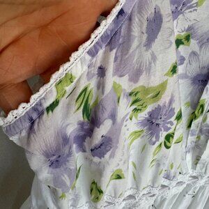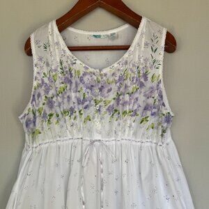 La Cera 100% Cotton White Lavender Primrose Floral Print Sleeveless Night Gown Size 2X