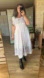 This Night Gown / Midi Dress from La Cera is Made in India and constructed in 100% Cotton poplin white with lavender and green primrose print fabric. It features a round scoop neckline, white crochet lace collar and armholes, pin tuck front bodice, lace inset empire waist with lightest lavender satin drawstring adjustable tie, side seam pockets and a full gathered midi length silhouette. This is cottagecore, romantic, girly, vintage inspired, euro summer, house dress, nighty, summer dress, coastal, garden party, french girl vibes.