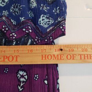 La Cera Floral Midi Dress Purple Rayon Shift Boho Short Sleeve Womens Medium
