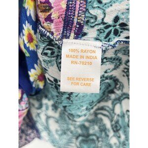La Cera Funky Print Art to Wear Long Sleeve Top Sz 1X Wooden Buttons