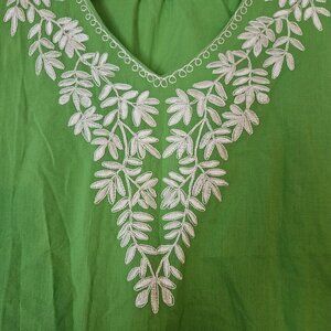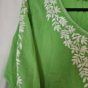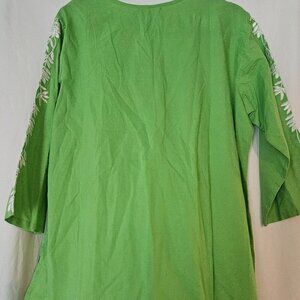 La Cera Lime Green Embroidered Tunic Top 3/4 sleeves Size Large