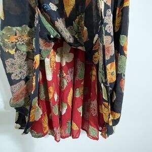 La Cera Reversible Floral Midi Skirt Size L Red Black Watercolor Flowy India