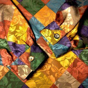 La Chine Classic Blouse Size 12 Satin Polyester Patch Look Rose Long Slv Vintage
