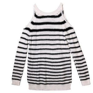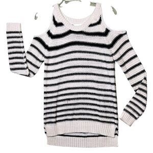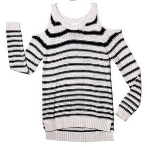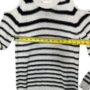 La Classe Couture Sweater Womens XS Black White Striped Cold Shoulder Pullover