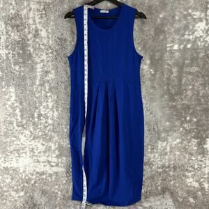 La Clef Maternity Sz L Pleated Stretch Sleeveles Midi A Line Dress Blue Pullover