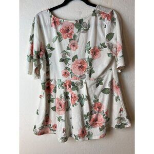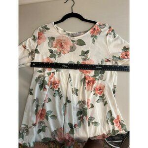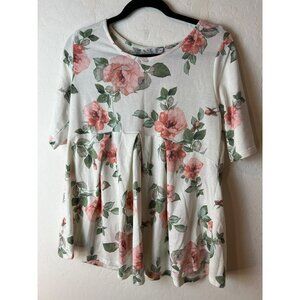La Clef XL Women Floral Print White Pink Elbow Sleeve Baby Doll Tunic