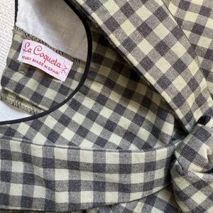 Charming olive green and black plaid dress with long sleeves, sailor collar and a tie detail. 100% cotton, lined, mother of pearl buttons. Like new condition. Made in Spain.