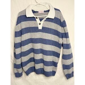 La Coqueta Blue Gray Striped Collared Knit Sweater | child’s Rugby Pullover