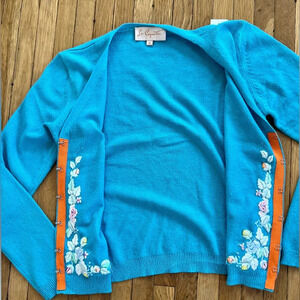 Turquoise/Blue Cardigan with clasp closures in the front.