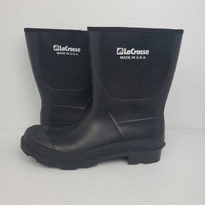 La Crosse Mens Rain Boots Black Rubber Pull On Sherpa Lined Round Toe USA 13 New