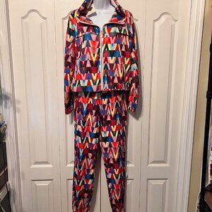 La Diosa-NWT-Women's 2 PC Jogger Pant/Jacket Set-Bright Multi Color-Medium-Hood