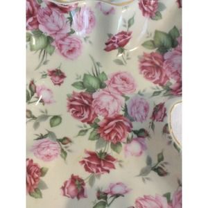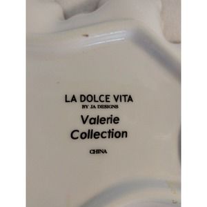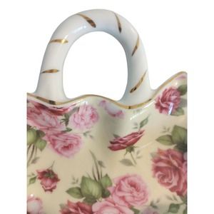 La Dolce Vita Leaf Candy Dish Handle Red Pink Roses Valerie Collection GOLD Trim.