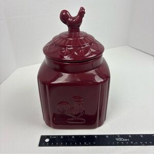 La Dolce Vita Turino Chicken Canister Maroon Red Ceramic Farmhouse Modern Decor