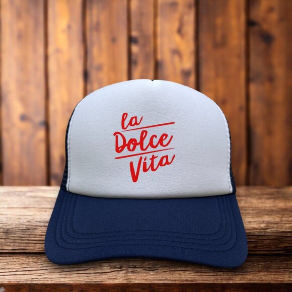 La Dolce Vita Unisex Trucker Hat Navy The Sweet Life Italian Florence Milan Cap
