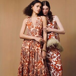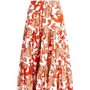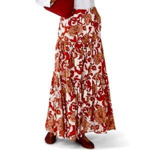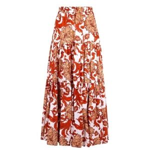 LaDoublej Big Reef light wear tiered floral-print silk and cotton blend maxi skirt. Material 80% cotton 20% silk. Skirt has an elastic waist and is new without tags. Presently sold in stores. Price is firm!