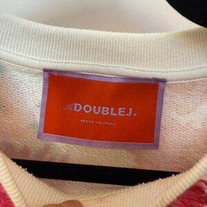 La DoubleJ Floral Print Cotton Crew Neck Top Feather Trim Sz Small La Double J
