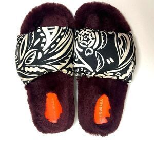 La DoubleJ Furry Slides Fauve in Twill Sz. 7