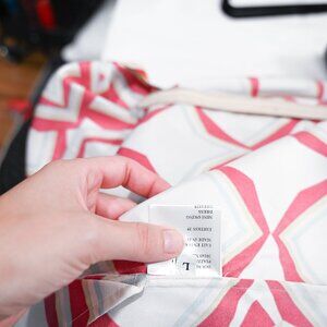La DoubleJ Large Silk Mini 100% Silk Swing Dress in Red Abstract Geometric Print
