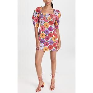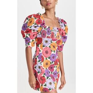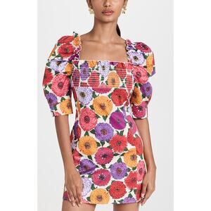 La DoubleJ Mini Sexy Dress Zinnie Floral Print Puff Sleeve Smocked Dress NEW