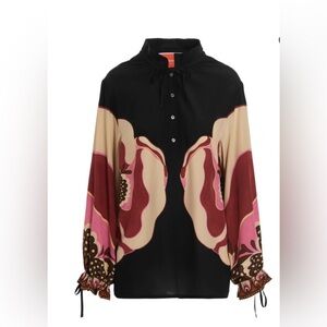 ⭐️La DoubleJ Sardegna Floral-Print 100% Silk blouse—EUC—Small—Beautiful! Ties at cuffs have been shortened. Tiny, tiny spot shown in last photo.