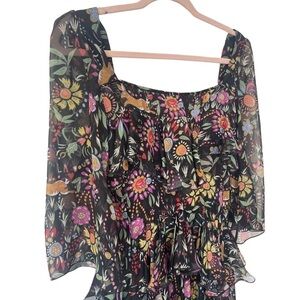 La DoubleJ Sissi Tiered Ruffle Midi Dress Babe in Silk Chiffon XS