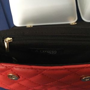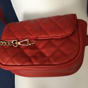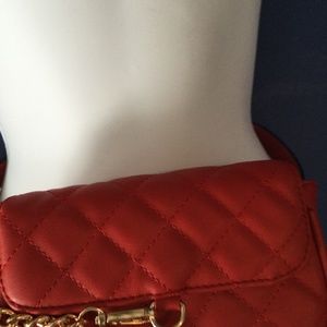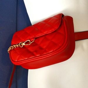 La Express Fanny bag red with belt that extends to your waist gold chain in the front mint condition clean interior ๐