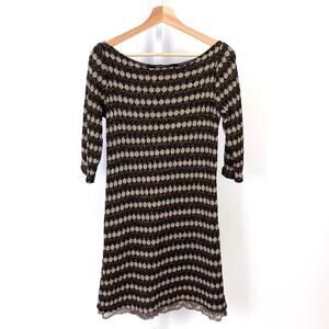 La Fee 3 S Maraboutee Italy Crochet Knit Sweater Dress 3/4 Sleeve Stripe Brown