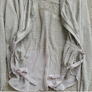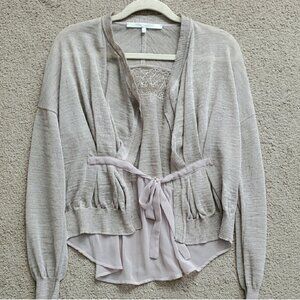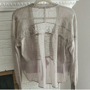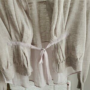 La Fee Maraboutee Women's Chic Beige Linen Blend Lace Detail Cardigan Size S