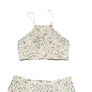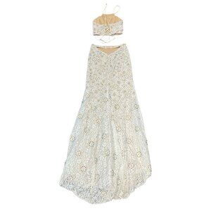 La Femme 2 Piece Gown Womens 8 White Sequin Lace Halter Lace Up Slit Maxi Skirt