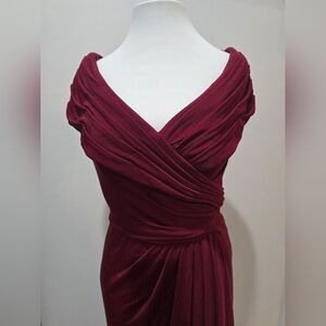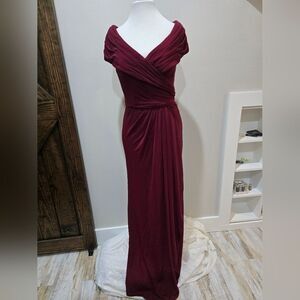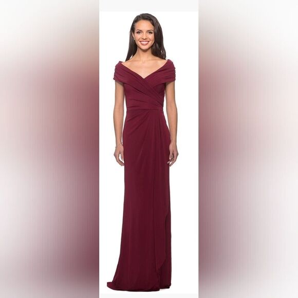 La Femme 26519 Off Shoulder V Neck Long Sheath Jersey Gown NWOT size 4 Wine
