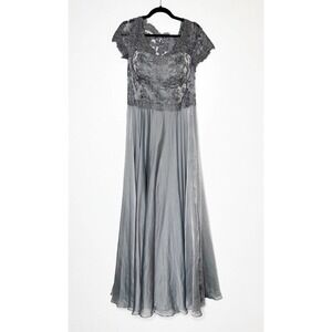 La Femme 27098 Platinum Grey Embroidered Lace Chiffon A-Line Gown Women's SZ 10