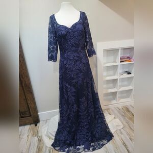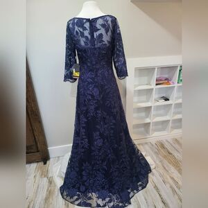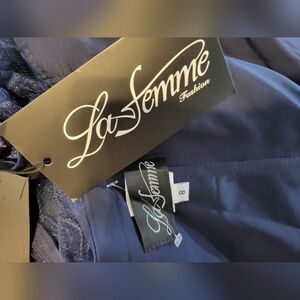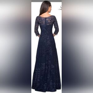 La Femme 28053 Floral Embroidered Mesh A-Line Gown Navy Women's Size 8 NWT Blue
