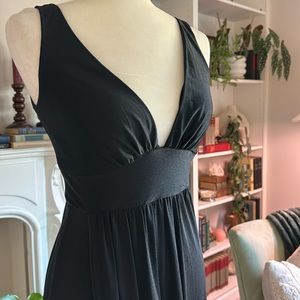 Flaunt a stunning silhouette in this sleeveless plunge-neck gown punctuated with a soaring, stem-showing slit.