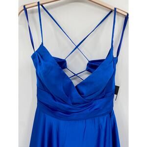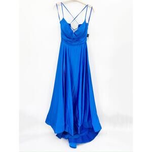 La Femme 28571 Royal Blue Satin Empire Waist Sleeveless Formal Gown Size 10 NWT