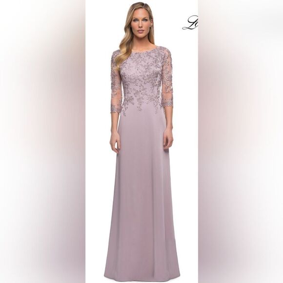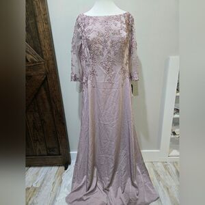 La Femme 29251 Illusion Sleeves Floral Top Dress NWT Sz 14 Light MAUVE/Pink
