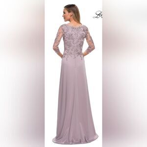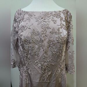 La Femme 29251 Illusion Sleeves Floral Top Dress NWT Sz 14 Light MAUVE/Pink