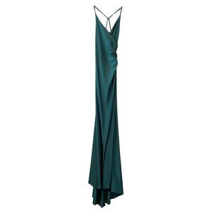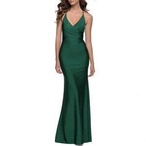 La Femme 29848 Faux Wrap Strappy Criss Cross Open Back Gown in Emerald Sz. 0