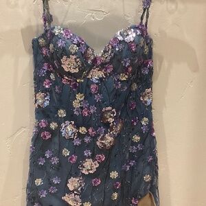 La Femme #32618 Slate Blue Dress Size 4 - NWT