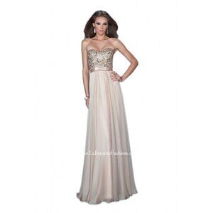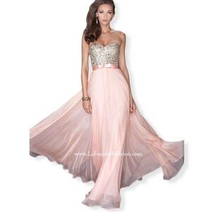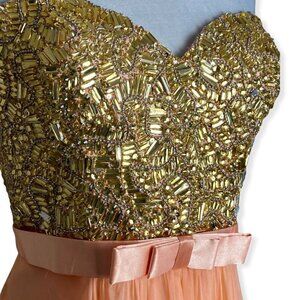 La Femme $480 NWT 19282 Apricot Beaded Chiffon Strapless Formal Gown Sz 14