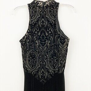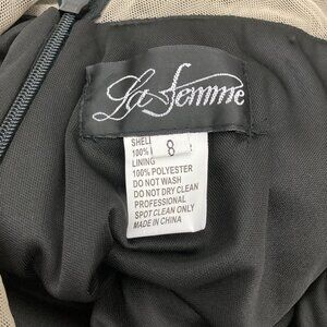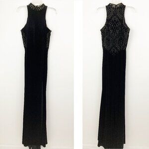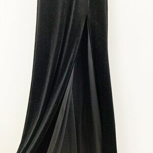 La Femme Black HIgh Neckline Velvet Fitted Formal Gown Size 8 Side Slit 25559