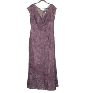 NWOT La Femme Dusty Lilac Embellished Lace Gown 16