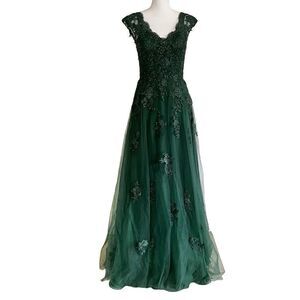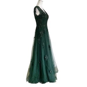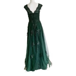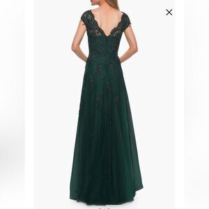 La Femme Embellished Tulle & Lace A-Line Gown Dark Emerald Size 4 NEW MSRP $599