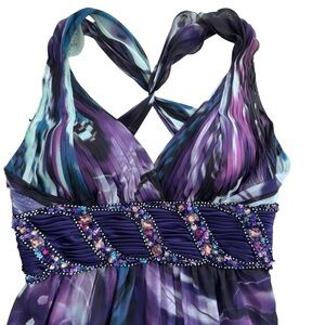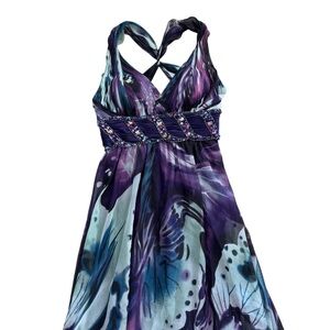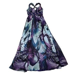 La Femme Embellished Twist Knot Back V Neck Chest Maxi Dress Gown Butterfly 10