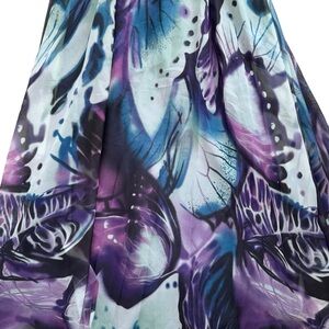 This stunning La Femme maxi dress is perfect for any formal occasion, whether it be a wedding or cocktail party. The dress features an elegant V-neckline and a sleeveless design, with a zip closure for easy wear. The twist knot back and sequin accents add a touch of glamour to the dress, while the butterfly theme gives it a playful edge.