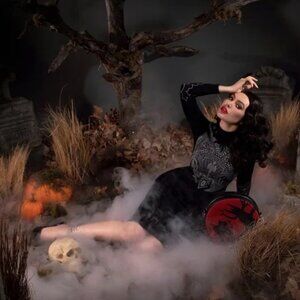 La Femme En Noir by Micheline Pitt, sister company to vixen, collab with Tim Burton’s Sleepy Hollow film, starring Johnny Depp and Christina Ricci.