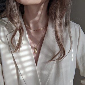 Don't forget to love yourself first. Our 'femme' or 'woman' necklace features a female form on our delicate simple chain. Wear it alone or layer it with your other favorites.
