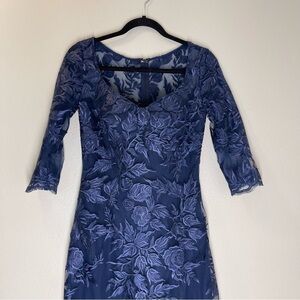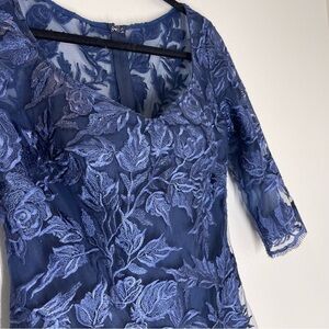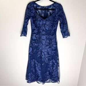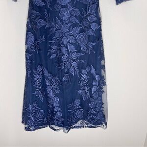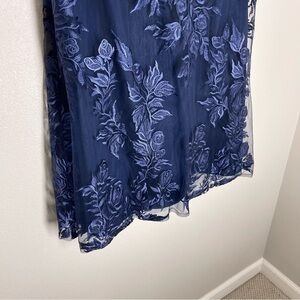 La Femme Floral Embroidered Mesh A-Line Dress Deep Navy Blue Size 2 Women’s