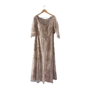 La Femme Floral Embroidered Mesh A-Line Gown Champagne Plus Size 16 NEW