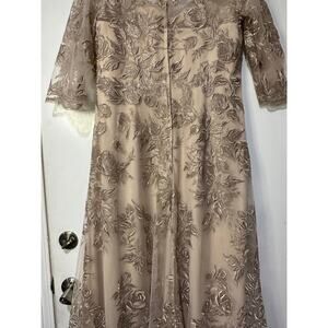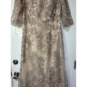 La Femme Floral Embroidered Mesh A-Line Gown Champagne Size 12 NWT 28053